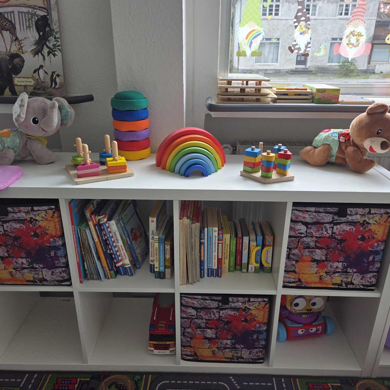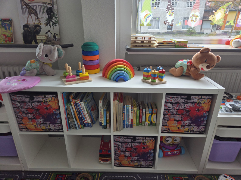 In unserer Kindergroßtagespflege gibt es viele verschiedene Bildungsbereiche. Wir arbeiten mit Hörbüchern, Liedern, Fingerspielen und Büchern, die die Sprache verbal und nonverbal, die Fantasie und das Wissen der Kinder fördern. Durch verschiedenste angeschaffte Materialien und Spielzeuge, wie z.B. Legosteine, Bauklötze, Steckspiele, Malsachen und Knete wird bei uns die Feinmotorik gefördert. Dadurch, dass jedes Kind individuelle Interessen hat, haben wir unterschiedliche Spielangebote. Häufig findet die Förderung der grobmotorischen Entwicklung bei Kindern unbewusst statt, deswegen bieten wir in unserer Kindergroßtagespflege viel Platz zum Toben, Spielen und freier Entfaltung. Durch unsere ständige Reflektion können wir uns immer weiter entwickeln und neue Angebote gestalten. Das ist ein sehr wichtiger Bestandteil unserer Arbeit.
